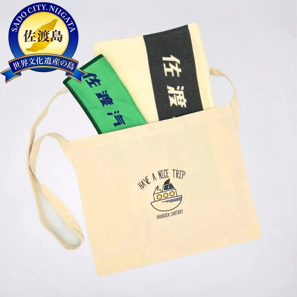 佐渡汽船のカーフェリーをイメージして作られたサコッシュとタオル・ハンカチのセットです。