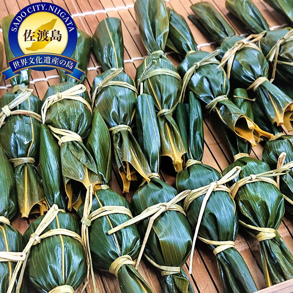 佐渡産コシヒカリ粉と、佐渡で摘んだヨモギ(一部新潟県産使用)を使って作られたよもぎ餅で、自社特製の小豆あんを包み込み、蒸し上げました。職人が一つずつ丁寧に作りあげた、笹の葉の野趣あふれる香りをお楽しみください。